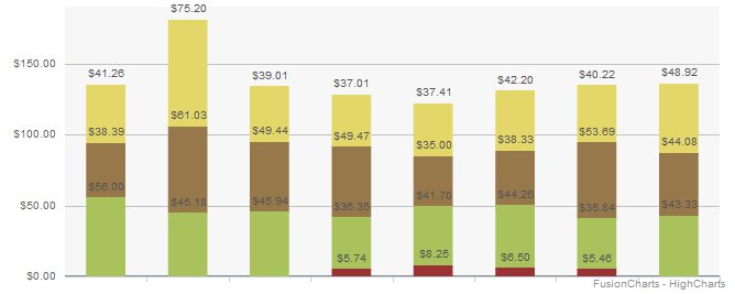tnz Report post Posted February 2, 2011 Hi, We are trying to make the existing charts on our internal website to work on iPad. But I am facing some problems with Javascript renderer. With the same dataXML, "FusionCharts.setCurrentRenderer('javascript');" renders completely different chart from the default Flash renderer (which renders perfectly). Please see the attachments for differences. Do I have to modify chart settings somewhere else to get the desired result? Here is the DataXML: <chart chartLeftMargin='15' chartRightMargin='10' chartTopMargin='5' chartBottomMargin='10' baseFontColor='000000' outCnvBaseFontColor='666666' plotSpacePercent ='17' plotFillRatio='100' showLabels='0' alternateHGridAlpha='0' canvasbgColor='f7f7f7' showPlotBorder='0' bgAlpha='0,0' canvasBorderAlpha='0' showBorder='0' showLegend='0' formatNumberScale='0' adjustDiv='0' yAxisValuesStep='1' yAxisValueDecimals='0' decimals='2' forceDecimals='1' showValues='1' numberPrefix='$' placeValuesInside='1' caption='' yAxisName='' > <categories> <category label='AIA' /> <category label='AMP' /> <category label='Asteron' /> <category label='AXA' /> <category label='Fidelity' /> <category label='OnePath' /> <category label='Sovereign' /> <category label='TOWER' /> </categories> <dataset seriesName='Policy Fee' color='993333'> <set value='0' showValue='0' /> <set value='0' showValue='0' /> <set value='0' showValue='0' /> <set value='5.74' /> <set value='8.25' /> <set value='6.5' /> <set value='5.46' /> <set value='0' showValue='0' /> </dataset> <dataset seriesName='Life Cover' color='a9c25b'> <set value='56' /> <set value='45.18' /> <set value='45.94' /> <set value='36.35' /> <set value='41.7' /> <set value='44.26' /> <set value='35.84' /> <set value='43.33' /> </dataset> <dataset seriesName='Trauma Cover' color='96784a'> <set value='38.39' /> <set value='61.03' /> <set value='49.44' /> <set value='49.47' /> <set value='35' /> <set value='38.33' /> <set value='53.69' /> <set value='44.08' /> </dataset> <dataset seriesName='Income Protection' color='e4d76a'> <set value='41.26' /> <set value='75.2' /> <set value='39.01' /> <set value='37.01' /> <set value='37.41' /> <set value='42.2' /> <set value='40.22' /> <set value='48.92' /> </dataset> <styles> <definition> <style name='myToolTipFont' type='font' font='Arial' size='12' color='333333'/> </definition> <application> <apply toObject='ToolTip' styles='myToolTipFont' /> </application> </styles> </chart> Any help is greatly appreciated. Share this post Link to post Share on other sites